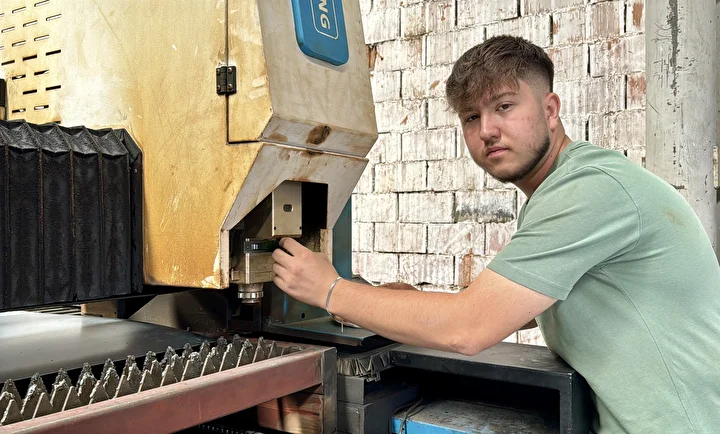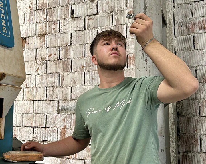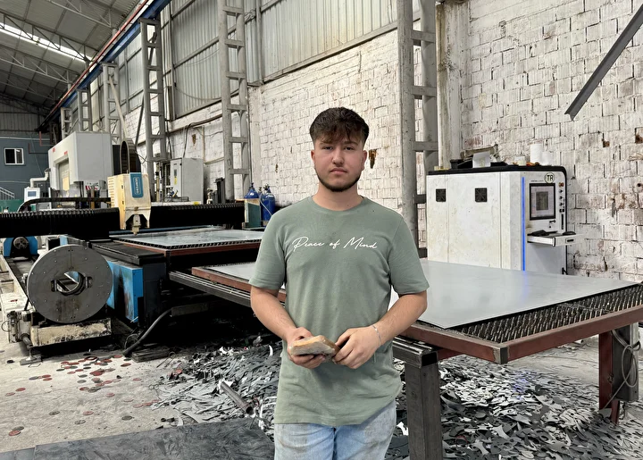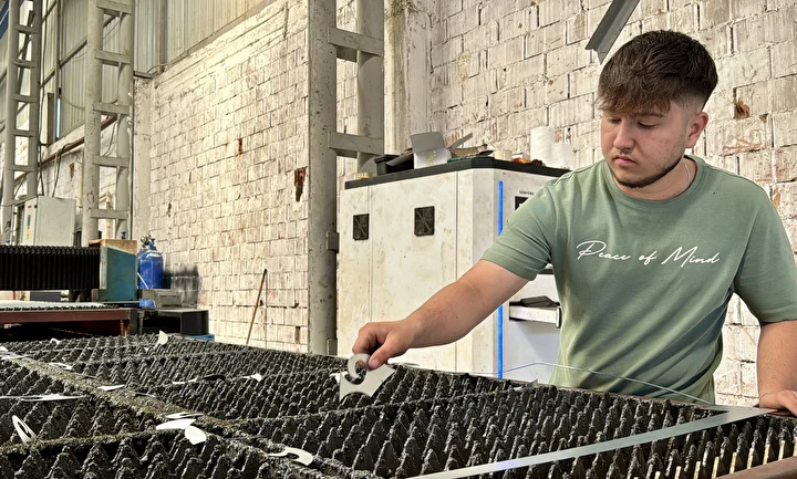Meslek edinme hevesiyle kısa sürede metal alanında kendini geliştiren Kayışlı, genç yaşına rağmen CNC tezgahında kesim, büküm ve doğrama yaparak tüm ekipmanları ustalıkla kullanıyor.
