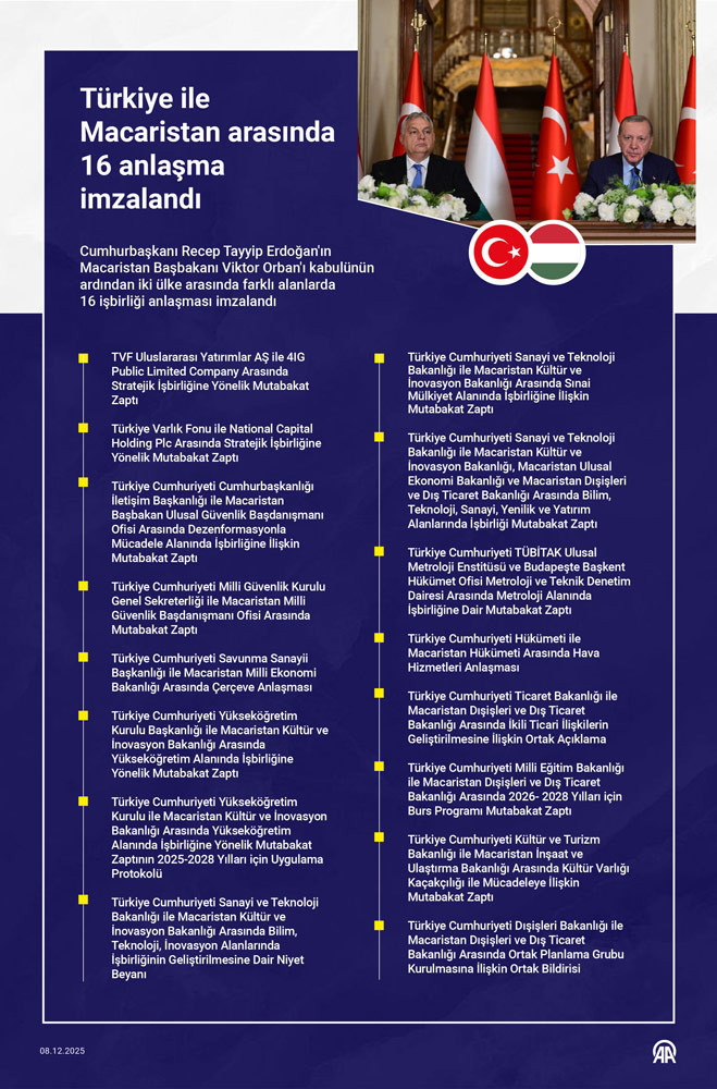 Erdoğan’ın Orban’ı kabulünün ardından iki ülke arasında farklı alanlarda 16 işbirliği anlaşması imzalandı.