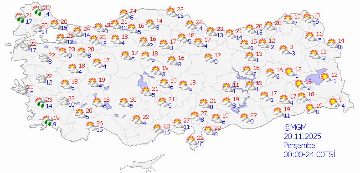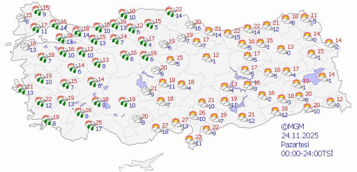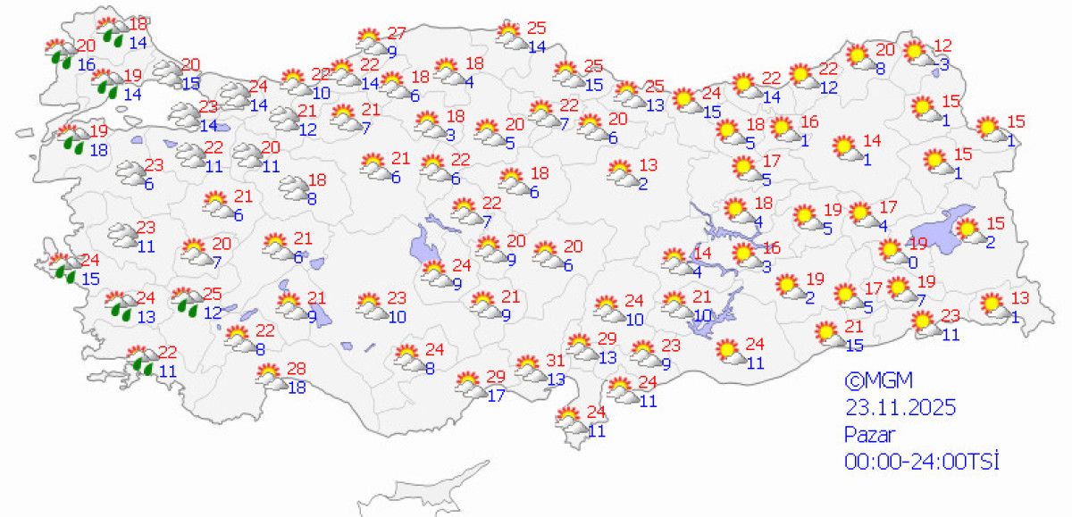 Meteoroloji Genel Müdürlüğü’nün (MGM) verilerine göre bugün Edremit Körfezi ile Muğla’nın batı çevrelerinde hafif sağanak yağış görülecek.